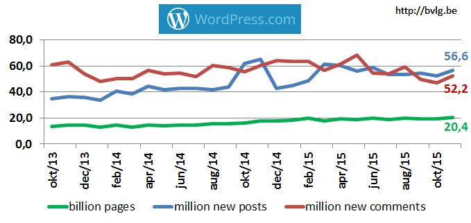 De cijfers die Wordpress.com vrijgeeft werden niet opgesplitst per land. Het aandeel van Belgische gebruikers op Wordpress.com blijft bijgevolg ongekend. Op de activity-pagina worden wel de 10 belangrijkste talen aangegeven, Nederlands stond op de 10de plaats in de top 10 met een aandeel van 0,6%.